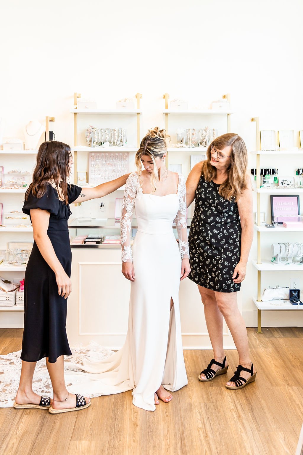 I booked the VIP package at Marilee's Bridal after my sister had a great experience the year before — she found her dress on her first appointment, and so did I! The consultation was amazing, and Claire was incredible to work with. My dress arrived right around the estimated time, and I picked up my accessories then too. I even borrowed my sister's veil from the year prior, which made it all feel extra special. All the girls had a blast during the appointment — the snacks and mimosas were such a fun touch. Highly recommend!